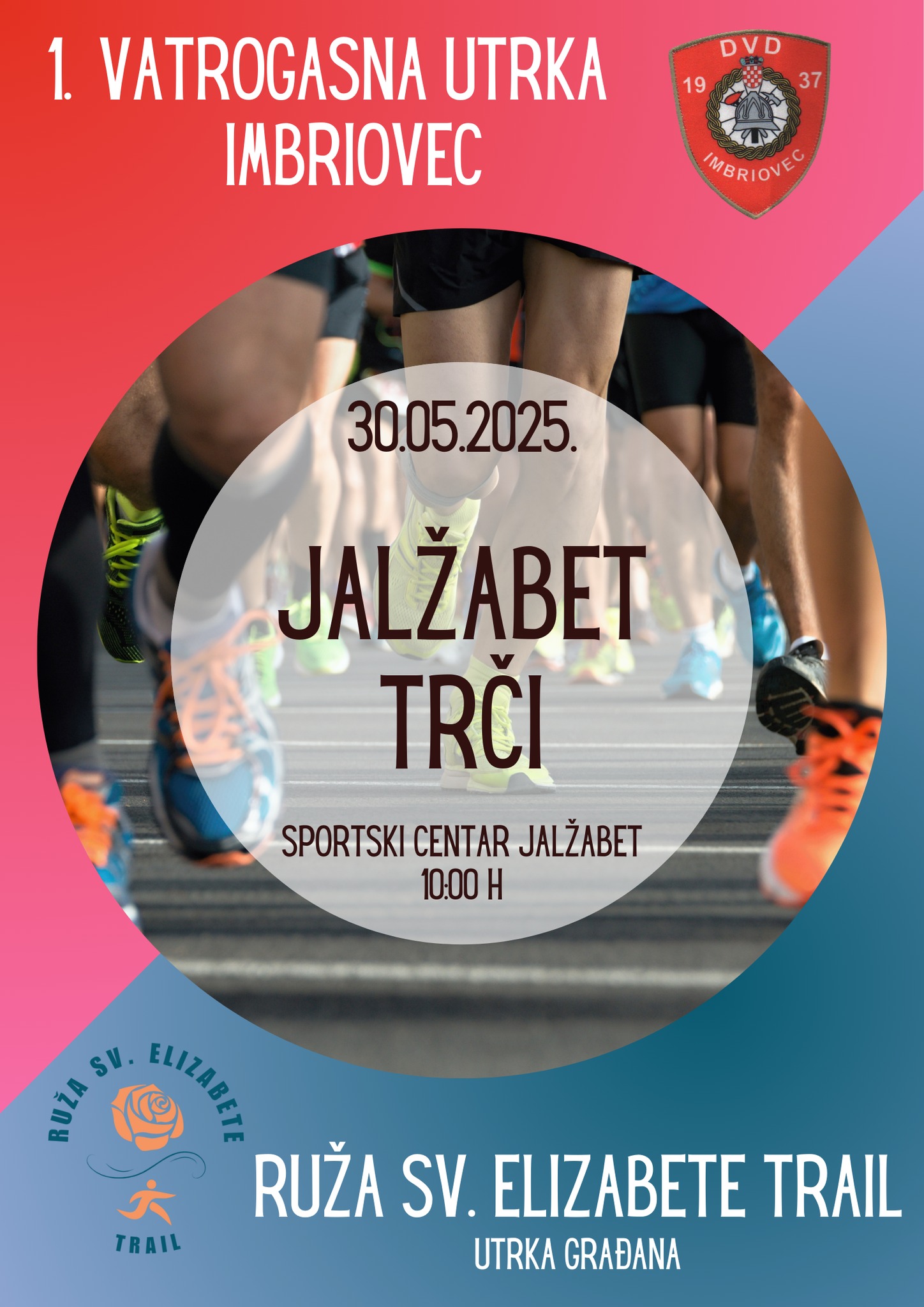 Vatrogasci će sudjelovati u „Vatrogasnoj utrci Imbriovec“, a građani sudjeluju u utrci „Ruža sv.Elizabete Trail“. Start utrka je u 10:00 na „Sportskom centru Jalžabet“. Prvo se trči po asfaltiranoj cesti do sela Imbriovec, a nakon toga ruta nastavlja makadamom po maloj uzbrdici i završava u Jalžabetu na mjestu starta. Ukupna dužina staze je 5 km, a sudjelovati mogu stariji od 16 godina.