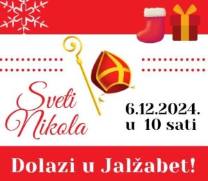 Općina Jalžabet organizira darivanje djece povodom blagdana Svetog Nikole. Darivanje djece održati će se u Dječjem vrtiću „Potočić“ u petak, 6. prosinca 2024. godine s