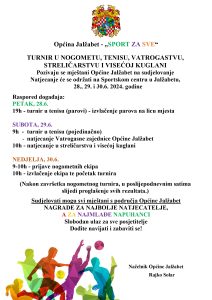 „SPORT ZA SVE“ TURNIR U NOGOMETU, TENISU, VATROGASTVU, STRELIČARSTVU I VISEĆOJ KUGLANI – na Sportskom centru u Jalžabetu, 28, 29. i 30. 6. 2024. godine